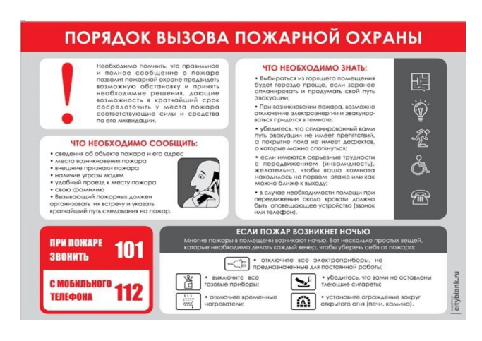 В случае обнаружения пожара звоните