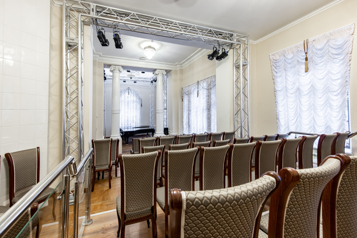 Вместимость зала: 80 мест, стулья не пронумерованы (возможно изменение рассадки слушателей), конструкция зала лестничная.