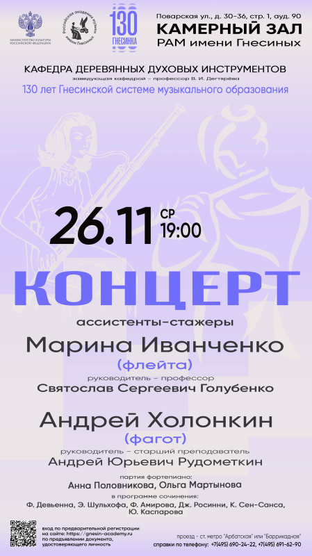 Концерт ассистентов-стажеров / Марина Иванченко (флейта) и Андрей Холонкин (фагот)