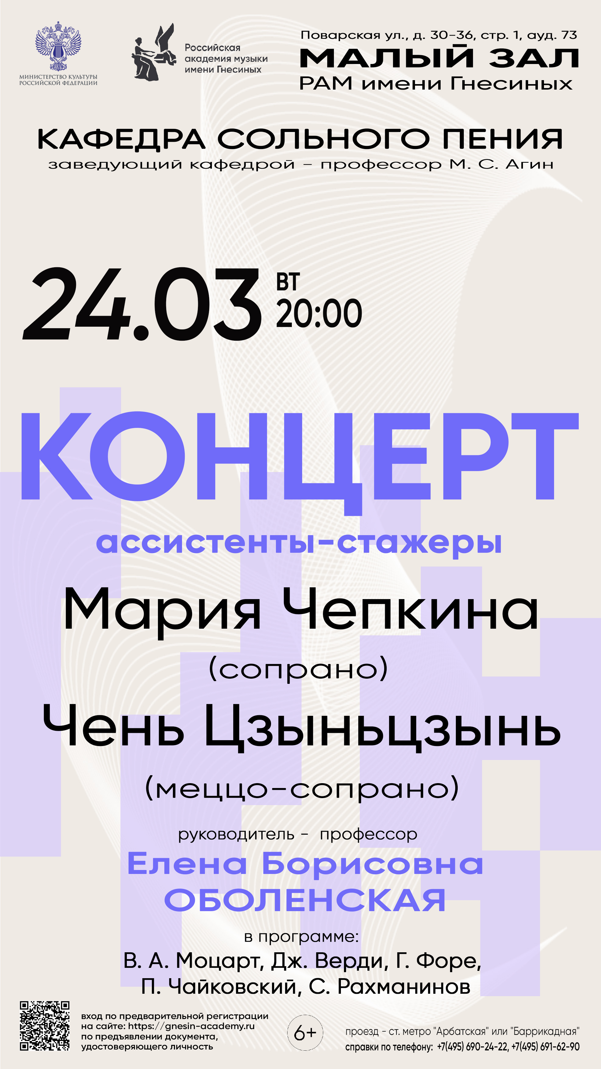 Концерт ассистентов-стажеров / Мария Чепкина (сопрано) и Чень Цзыньцзынь (меццо-сопрано)