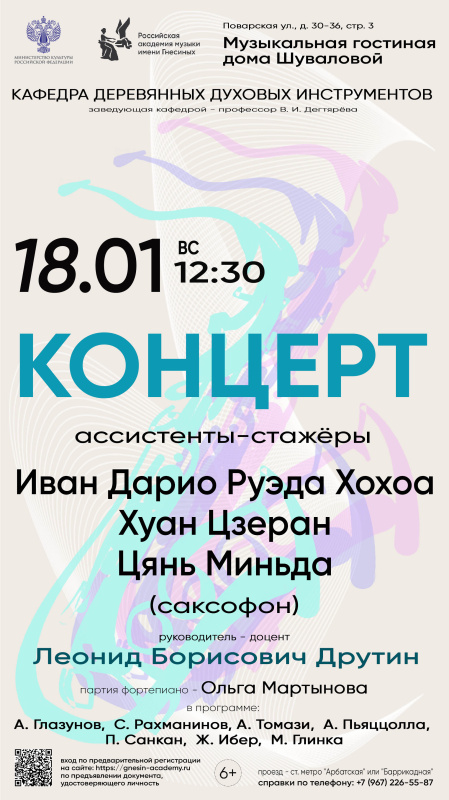 Концерт ассистентов-стажёров / Иван Дарио Руэда Хохоа, Хуан Цзеран, Цянь Миньда (саксофон)