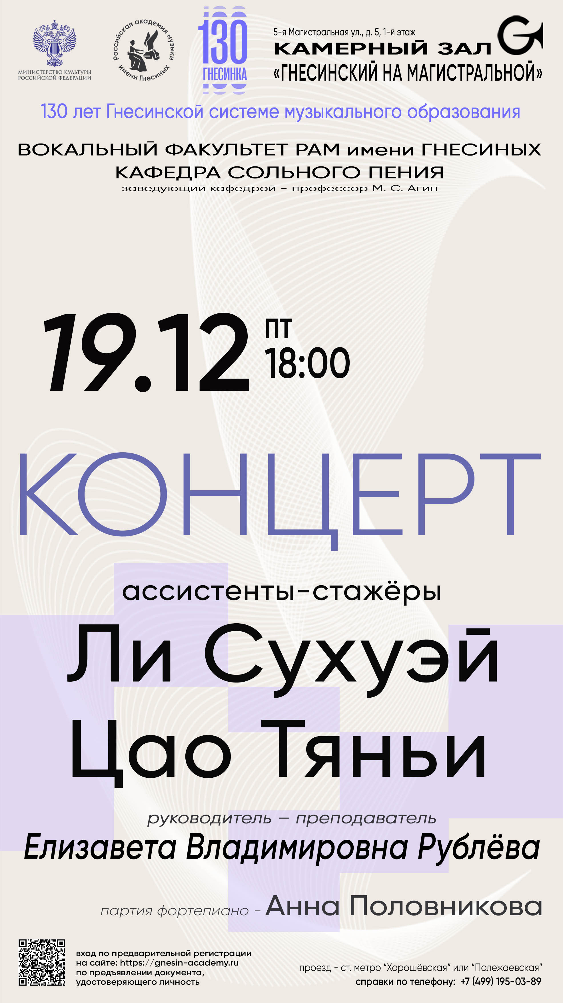 Концерт ассистентов-стажёров Ли Сухуэй и Цао Тяньи
