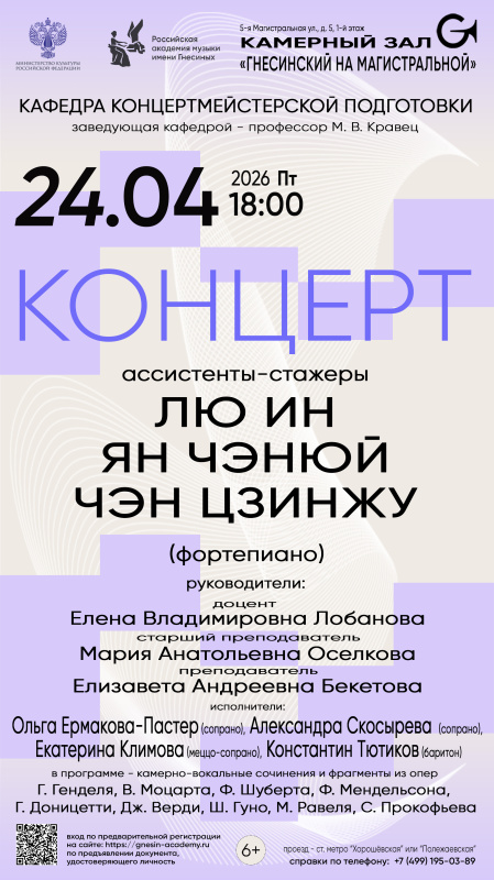 Концерт / Ассистенты-стажеры ЛЮ ИН, ЯН ЧЭНЮЙ, ЧЭН ЦЗИНЖУ (фортепиано)