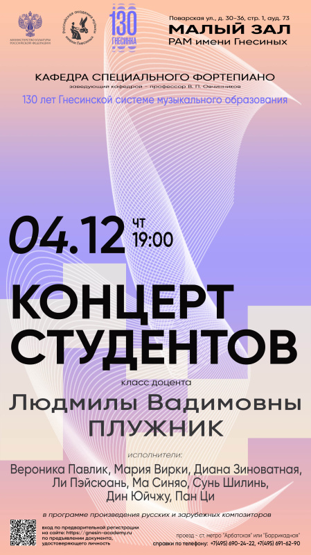 Концерт класса доцента Л. В. Плужник