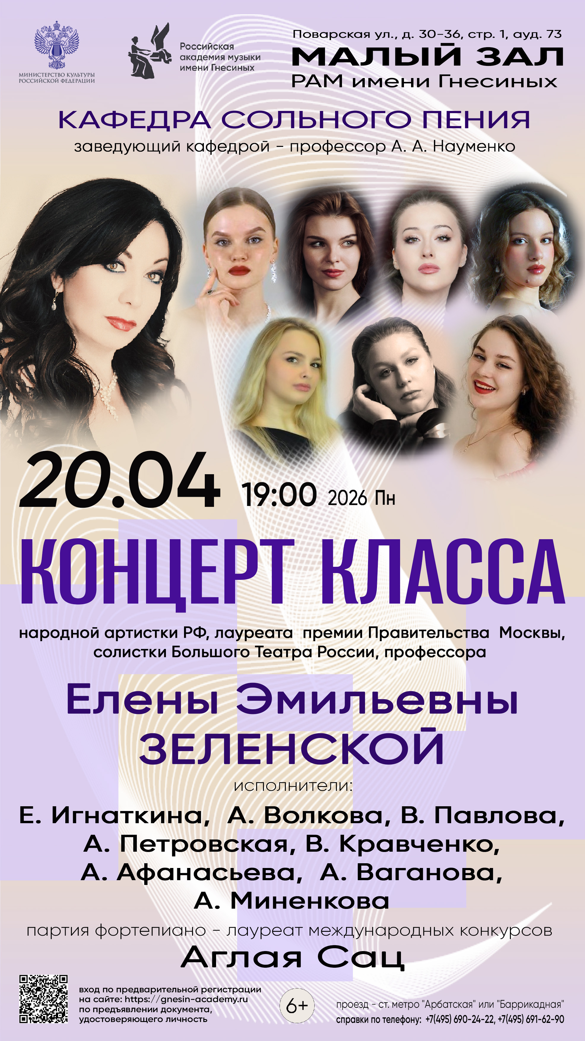 Концерт класса народной артистки РФ, лауреата премии Правительства Москвы, солистки Большого Театра России, профессора Е. Э. Зеленской