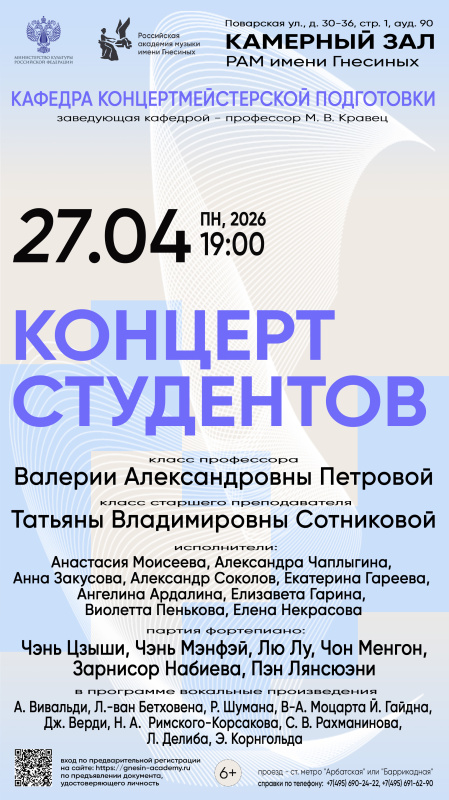 Концерт класса профессора В. А. Петровой и класса старшего преподавателя Т. В. Сотниковой