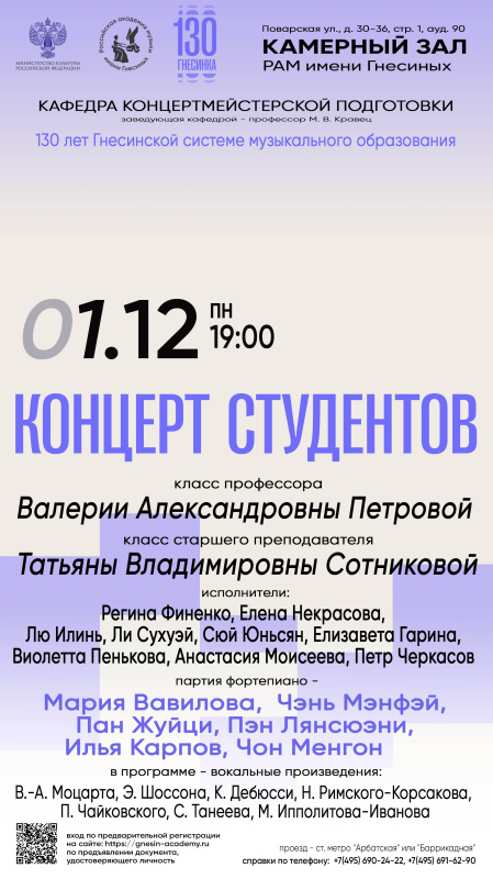 Концерт класса профессора В. А. Петровой и класса старшего преподавателя Т. В. Сотниковой