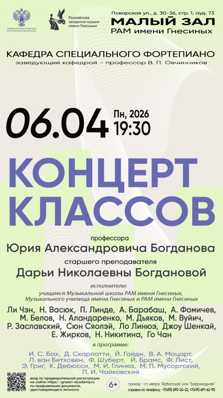 Концерт классов профессора Ю. А. Богданова и старшего преподавателя Д. Н. Богдановой