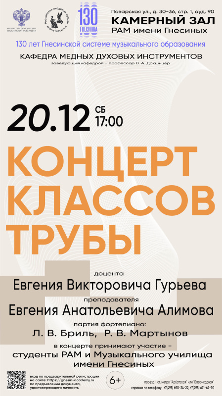 Концерт классов трубы доцента Е. В. Гурьева и преподавателя Е. А. Алимова