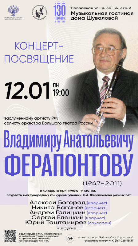 КОНЦЕРТ-ПОСВЯЩЕНИЕ заслуженному артисту РФ, солисту оркестра Большого театра России Владимиру Ферапонтову