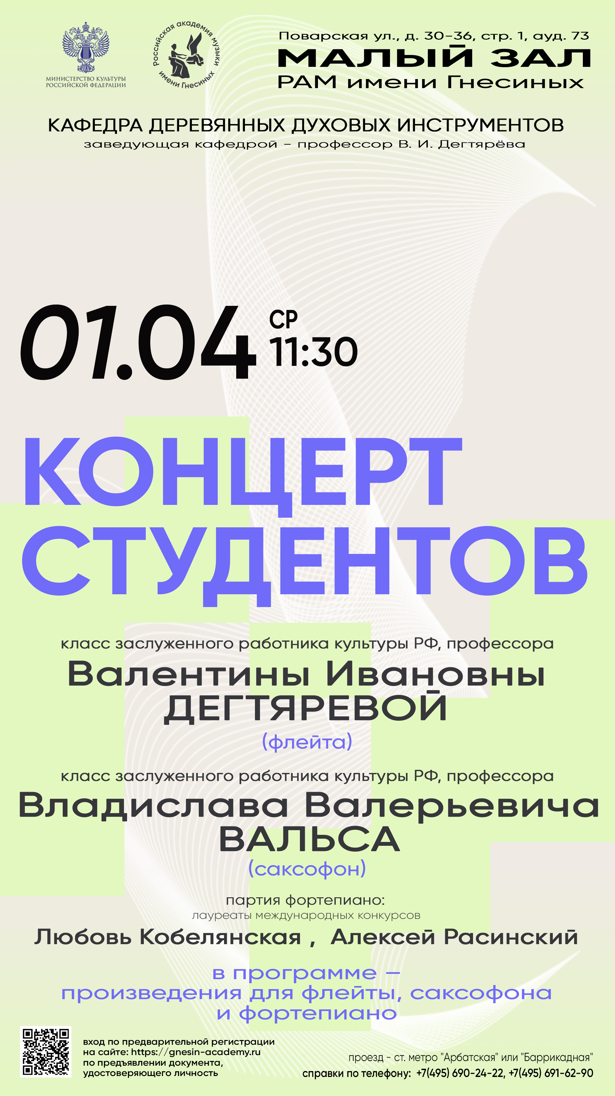 Концерт студентов класса профессора В. И. Дегтяревой (флейта) и класса профессора В. В. Вальса (саксофон)