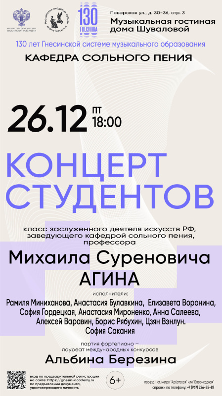 Концерт студентов класса заслуженного деятеля искусств РФ, профессора М. С. Агина
