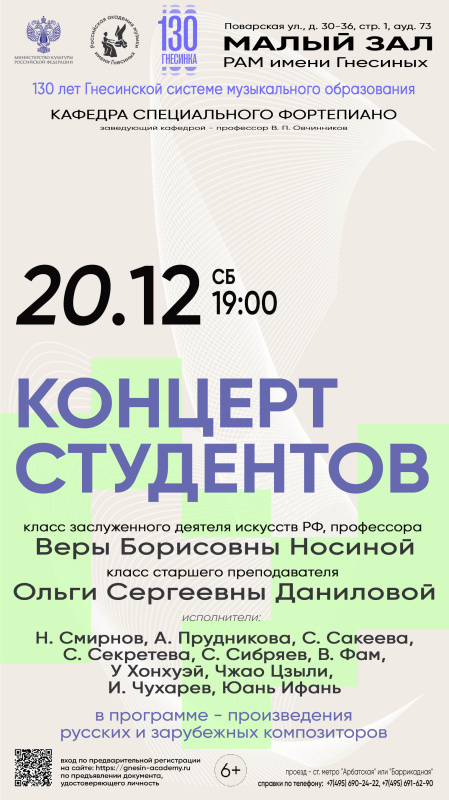 Концерт студентов классов заслуженного деятеля искусств РФ, профессора В. Б. Носиной и старшего преподавателя О. С. Даниловой
