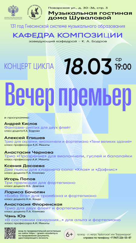 Концерт цикла «Вечер премьер» РАМ имени Гнесиных