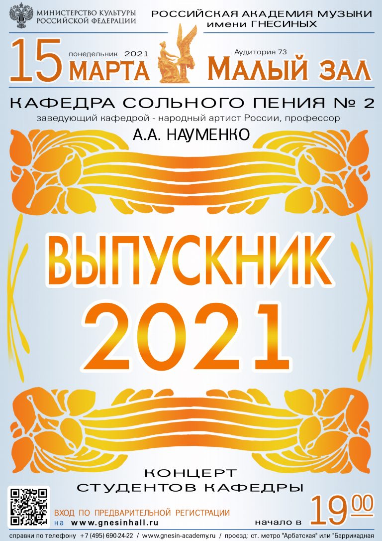 Концерт студентов кафедры сольного пения №2 «Выпускник 2021»
