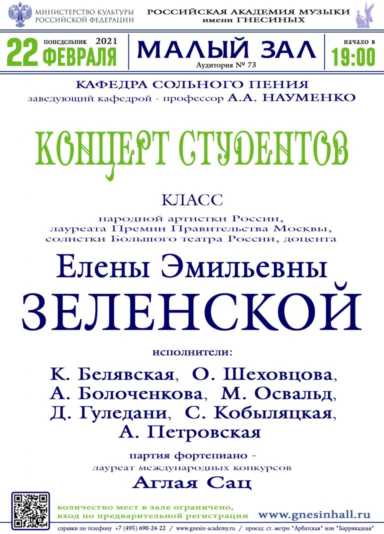 Концерт студентов класса народной артистки России Е. Э. Зеленской