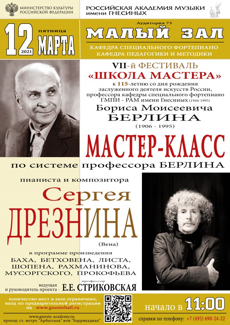 Мастер-класс по системе профессора Берлина пианиста и композитора Сергея Дрезнина (Вена)