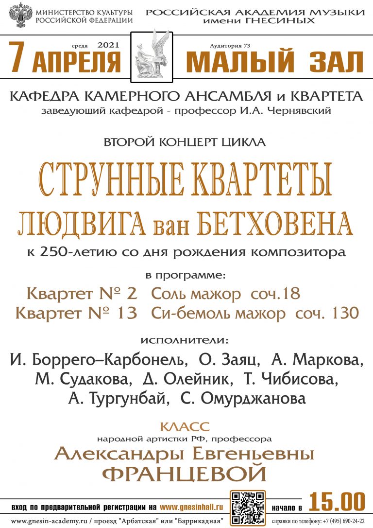 Второй концерт цикла струнные квартеты Людвига ван Бетховена