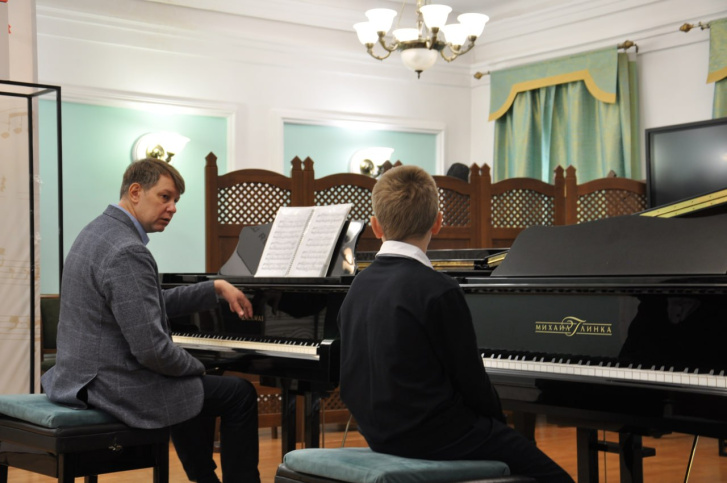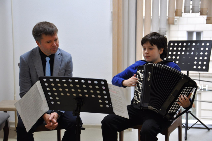 Гнесинку представили доцент кафедры специального фортепиано Святослав Хитев, доцент кафедры баяна и аккордеона Михаил Бурлаков и преподаватель кафедры струнных народных инструментов Никита Говоров.