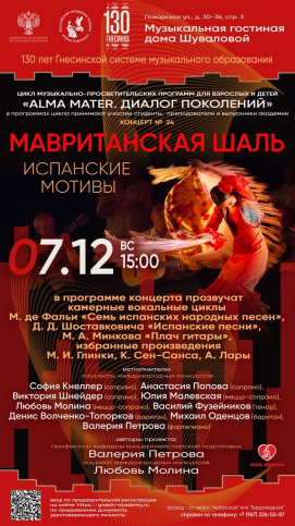 7 декабря в Музыкальной гостиной дома Шуваловой Российской академии музыки имени Гнесиных состоялся 24-й концерт цикла музыкально-просветительских программ «Alma Mater. Диалог поколений».
