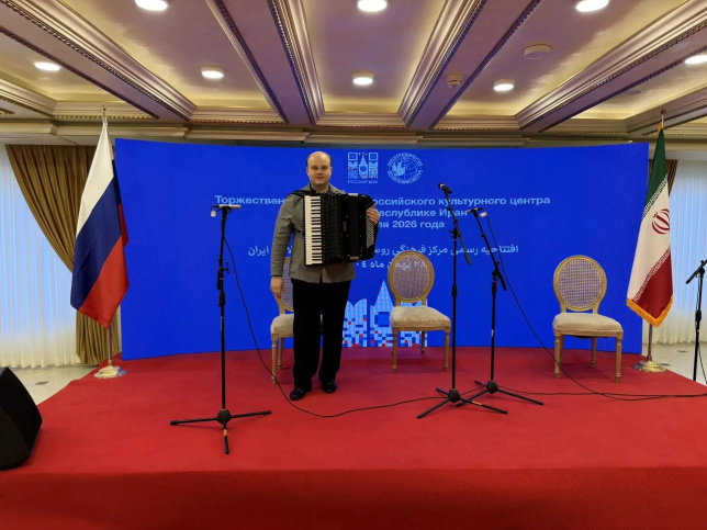 Доцент кафедры гитары, домры, балалайки Дмитрий Мурин и преподаватель кафедры баяна и аккордеона, заслуженный артист Московской области Алексей Сысоев приняли участие в торжественном концерте, приуроченном к открытию Русского дома в Иране. Также перед гостями выступили скрипач Петр Лундстрем (Россия) и мастер игры на сантуре Сиаваш Валипур (Иран).