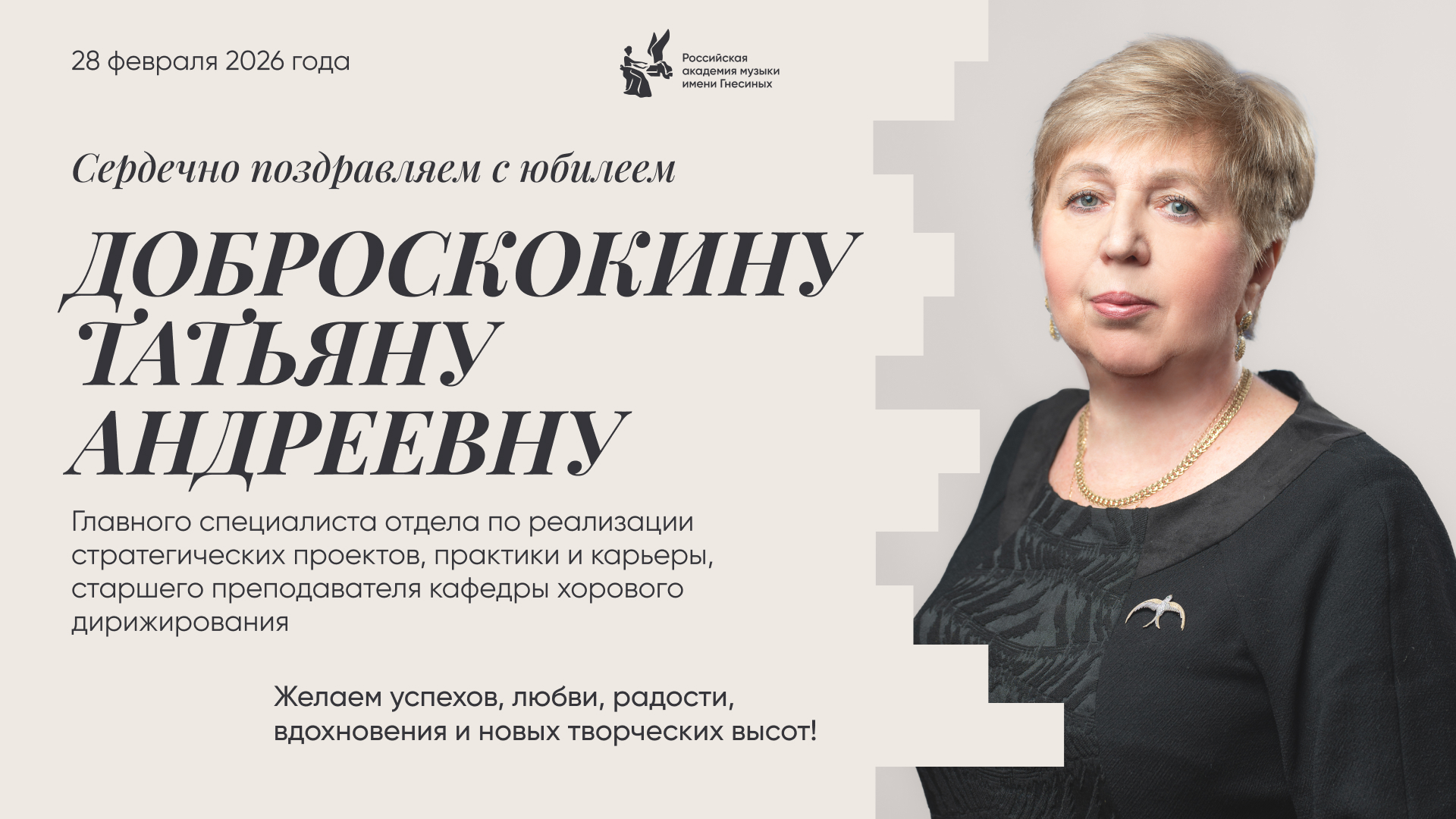 Поздравляем с юбилеем Доброскокину Татьяну Андреевну