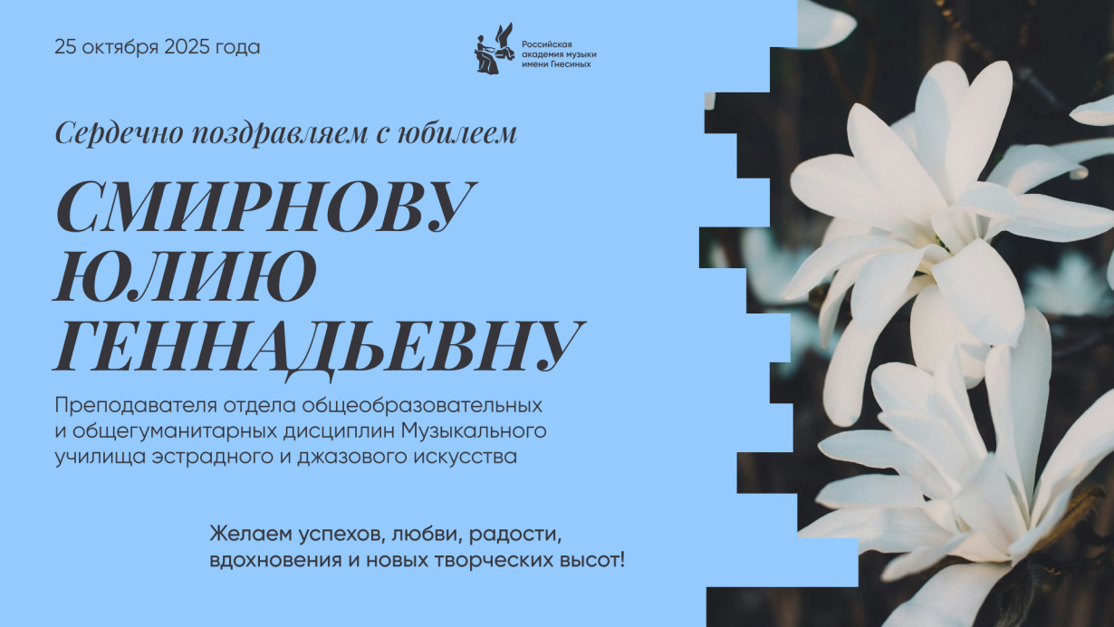 Поздравляем с юбилеем Смирнову Юлию Геннадьевну