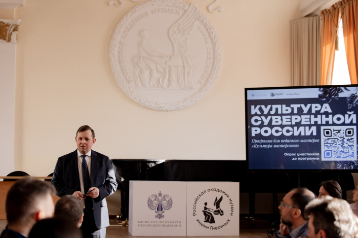 20 марта в Российской академии музыки имени Гнесиных состоялась встреча по программе «Культура мастерства». Занятия для преподавателей стали частью комплекса воспитательных мероприятий «Культура суверенной России», который реализуется Академией творческих индустрий «Меганом» (проект «Таврида.АРТ») совместно с Министерством культуры Российской Федерации.