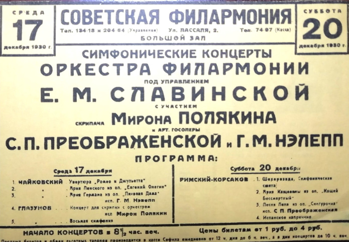 14 декабря 2025 года исполнилось 125 лет со дня рождения Евгении Михайловны Славинской (1900-1993), концертмейстера и дирижера Большого театра СССР, доцента ГМПИ-РАМ имени Гнесиных (1946-1990).