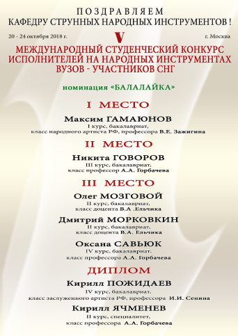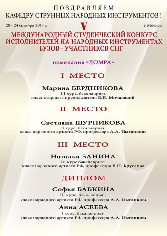 Поздравляем победителей V Международного студенческого конкурса исполнителей на народных инструментах вузов — участников СНГ