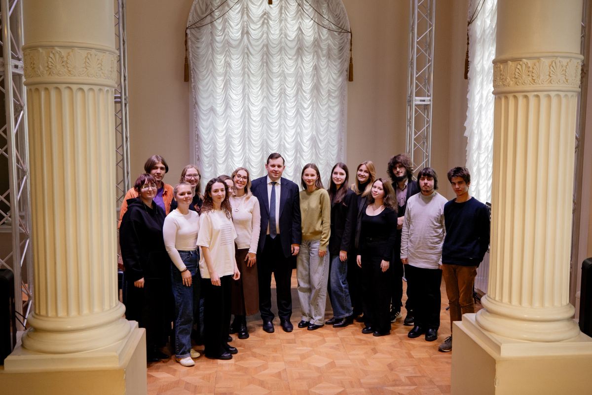 В Музыкальной гостиной Дома Шуваловой собрались представители администрации и студенты разных факультетов Академии. Александр Сергеевич ответил на волнующие многих вопросы, касающиеся международных стажировок, дополнения учебных программ, работы столовых в зданиях Академии и общежития и других насущных тем.