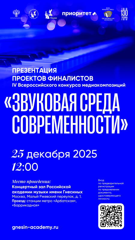 Российская академия музыки имени Гнесиных объявляет о начале приема заявок на IV Всероссийский конкурс медиакомпозиций «Звуковая среда современности».