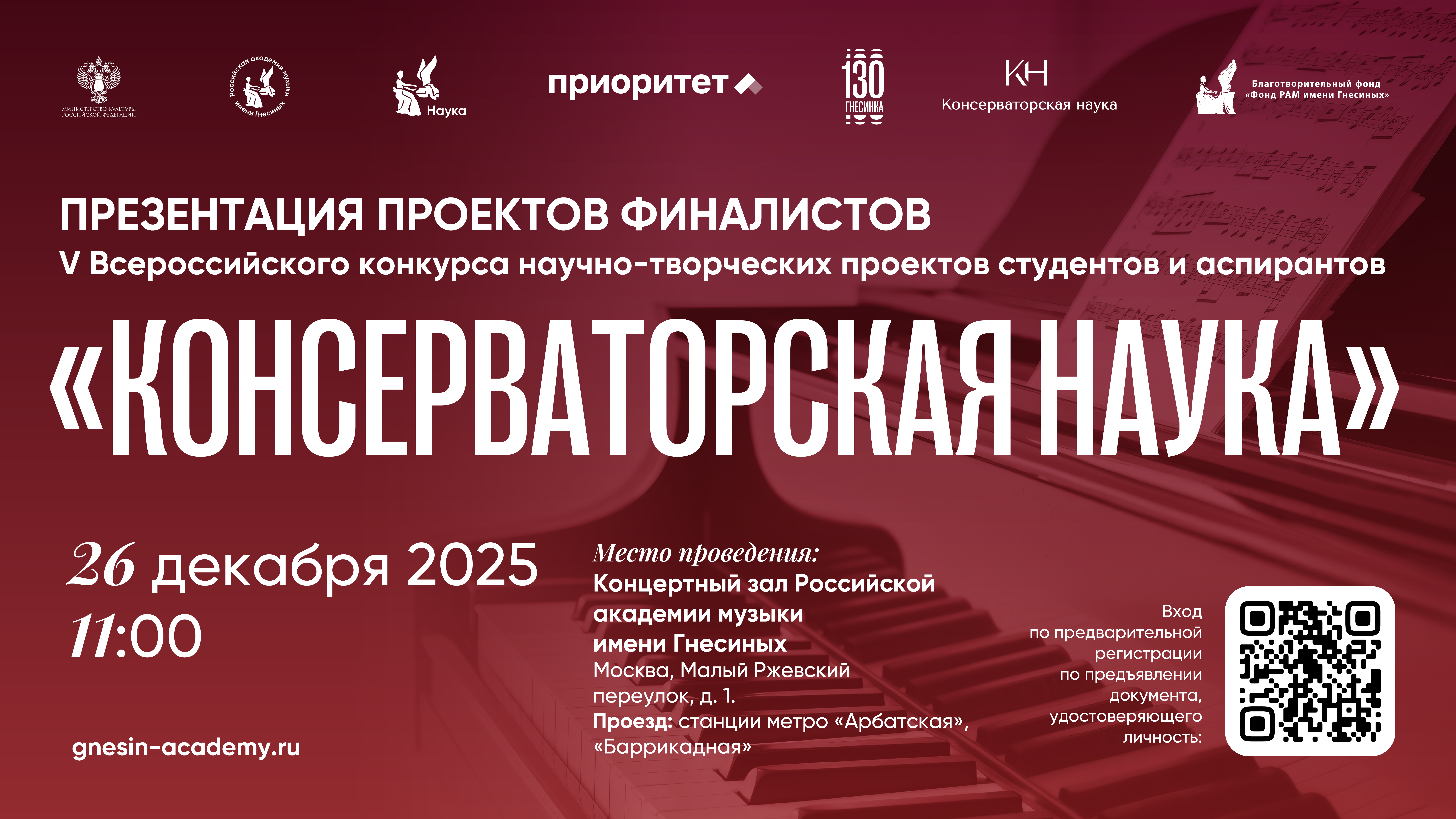 Российская академия музыки имени Гнесиных объявляет о начале приема заявок на V Всероссийский конкурс научно-творческих проектов студентов и аспирантов «Консерваторская наука».